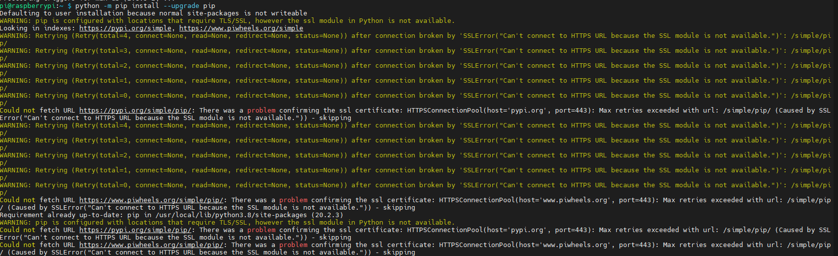 pip install --upgrade pip --trusted-host pypi.org --trusted-host files.pythonhosted.org