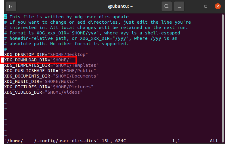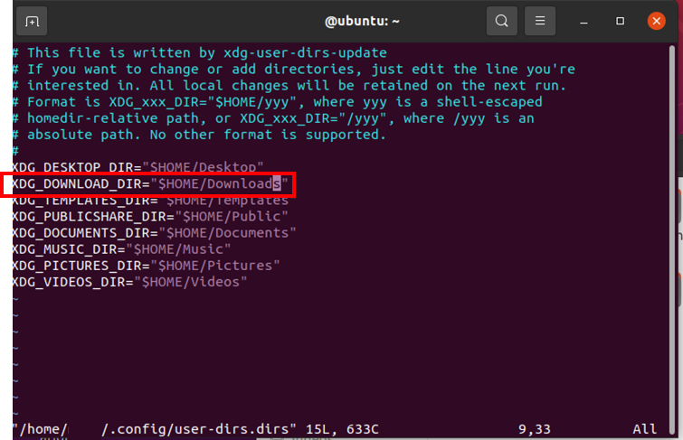 sudo vi ~/.config/user-dirs.dirs
