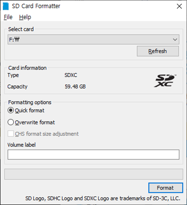 1) 이미지 flash 하기전에 SD Card를 포맷 해주세요.( 사용한 적이 없다면 패스하셔도 됩니다.)